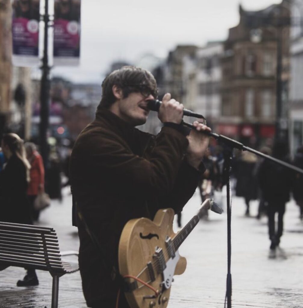 John has been singing ever since his childhood days in North Yorkshire. His main instrument was the trumpet but he also taught himself guitar, piano, bass and drums. He has incorporated all of these elements into his emotionally-charged songwriting. He loves performing live and can be seen regularly busking in Leeds.
